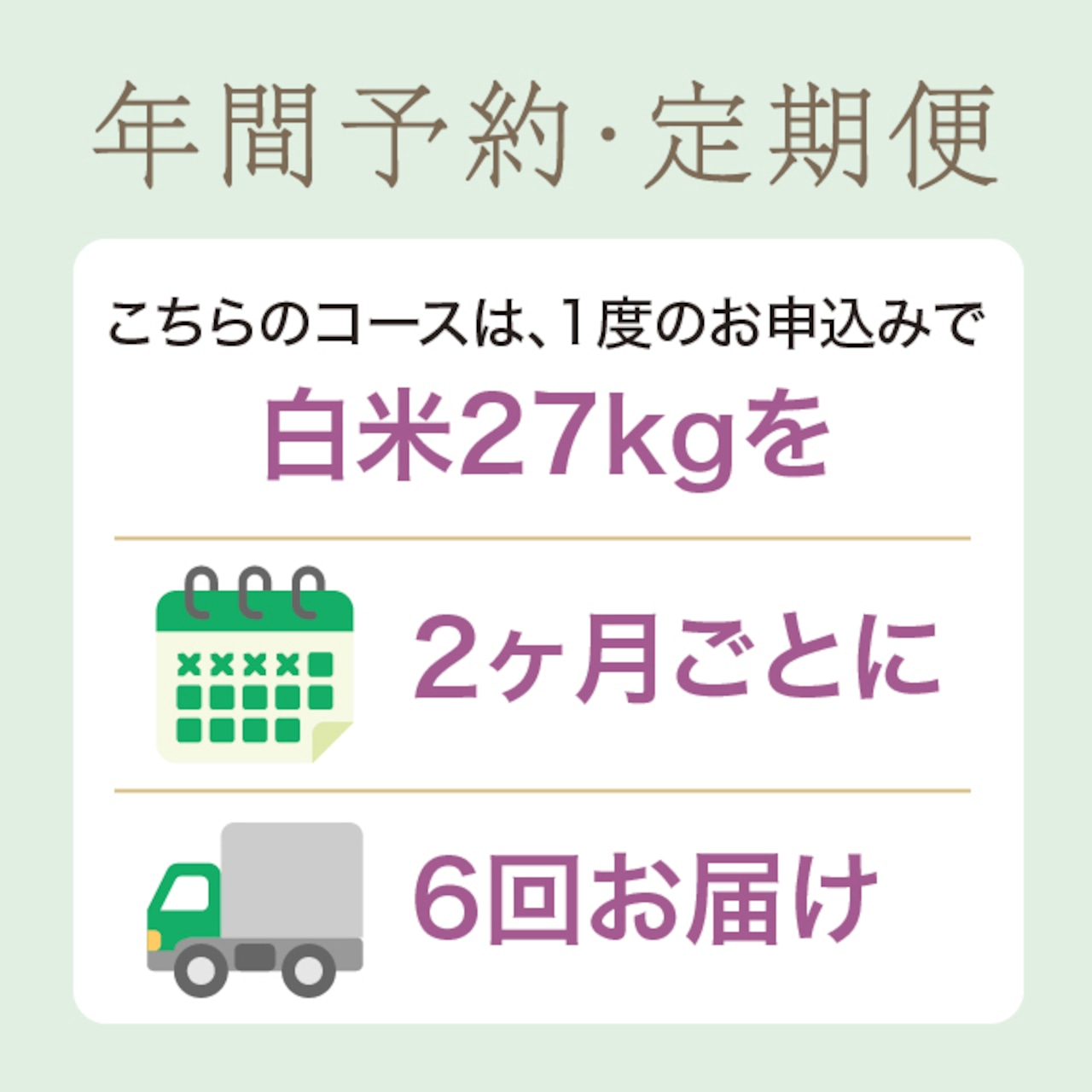 〈年間予約・定期便〉農家直売・特別栽培米 みずかがみ 白米27kg 2ヶ月ごと×6回