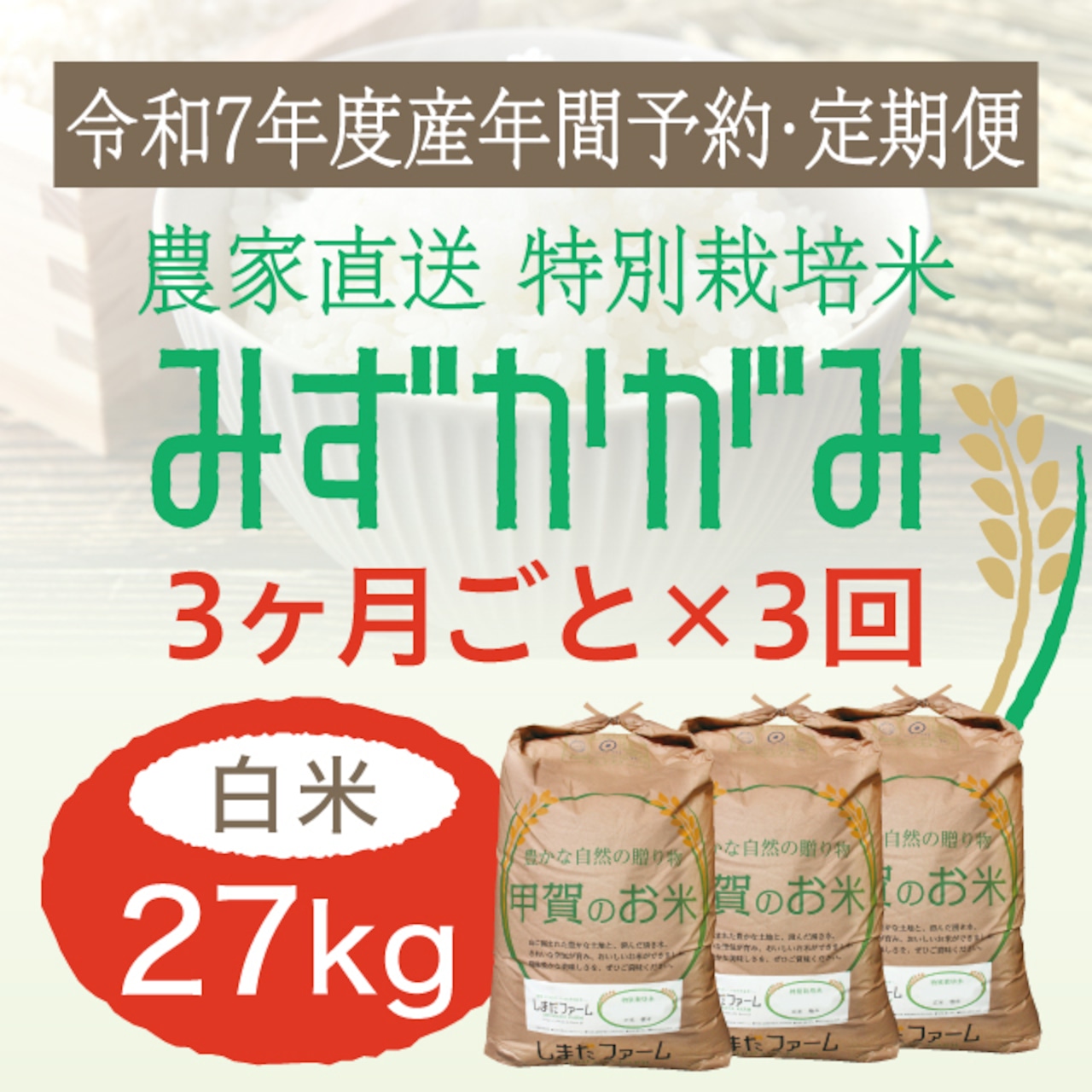 〈年間予約・定期便〉農家直売・特別栽培米 みずかがみ 白米27kg 3ヶ月ごと×3回