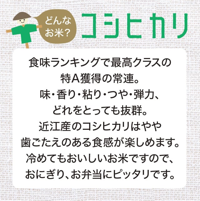 農薬・化学肥料を通常の半分にまで減らした滋賀県「こだわり農産物」の認証を受けたお米だから安心・安全です。